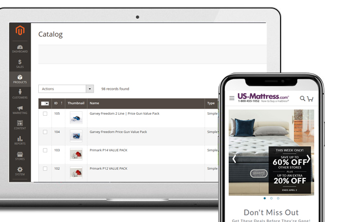 Magento eCommerce website platforms with unilmited flexibility via custom theme creation with genius level programming.